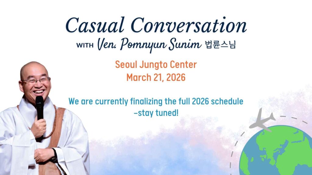 Ven. Pomnyun Sunim has been engaged in dialogue with the public for decades sharing the Dharma with people from various religious and cultural backgrounds. His unique approach to tackling life’s challenges, grounded in the original teachings of the Buddha, offers clear and easily accessible insights. Through his guidance, many have found immediate peace of mind and the confidence to face life’s challenges without despair or stress.