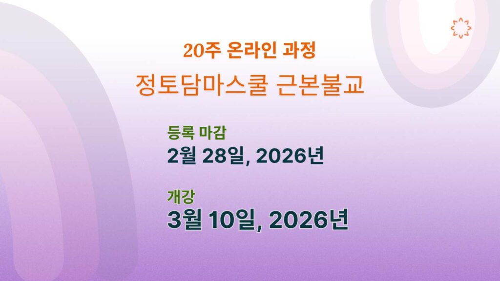 이 20주간의 프로그램을 통해 불교의 가르침에 따라 더 자유롭고 행복한 삶을 살 수 있는 방법을 배웁니다.