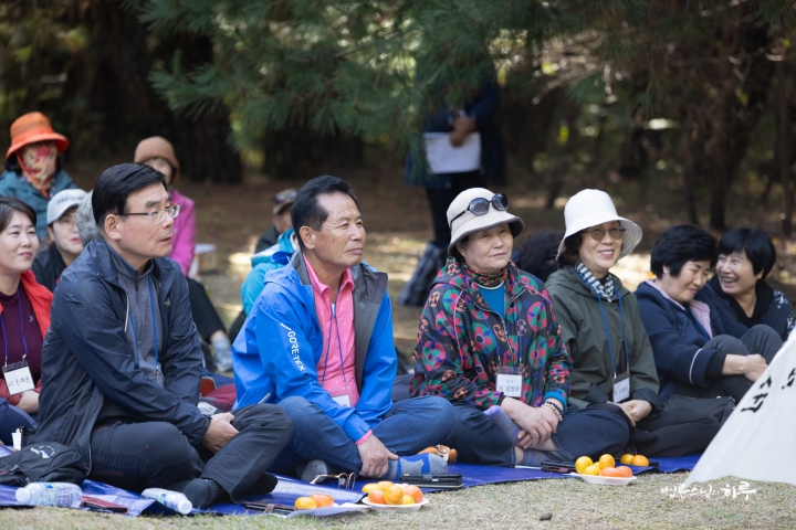 The Gyeongju Buddhist Student Association alumni had been on a pilgrimage to Namsan Mountain in Gyeongju since 10 AM and gathered in front of King Gyeongae’s tomb at 1 PM to meet Sunim. When Sunim arrived, everyone welcomed him warmly.
