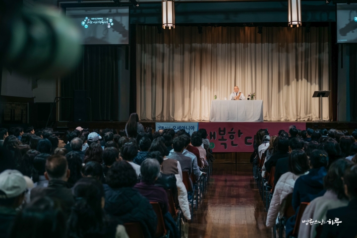 Those who had pre-registered their questions raised their hands and began conversing with Sunim. Over two hours, eight people were able to ask Sunim questions. Various life concerns and questions followed. One person wanted to be a good person but found it difficult to express opinions due to fear of conflict, seeking Sunim’s advice on how to respect others while protecting oneself.