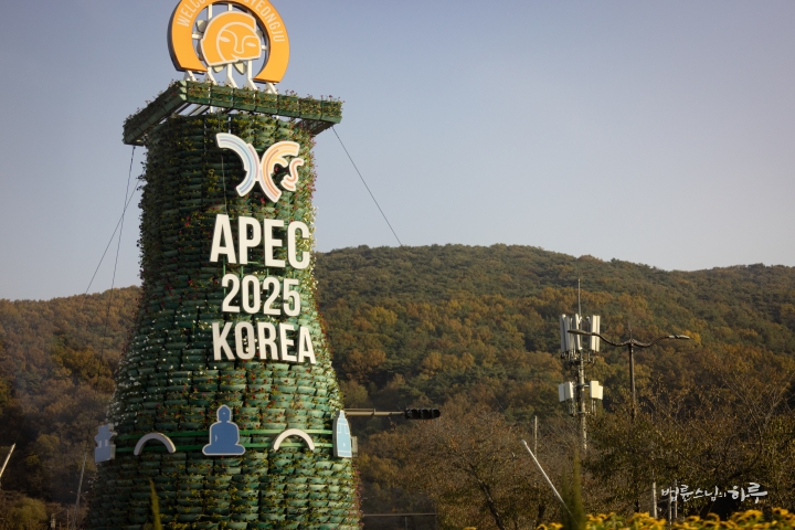 On the way to the Dubuk Training Center, he stopped by Gyeongju to see what changes had occurred during the 2025 APEC Summit. In the deepening autumn, the fall foliage was beautifully colored, and traces of the APEC Summit remained throughout.