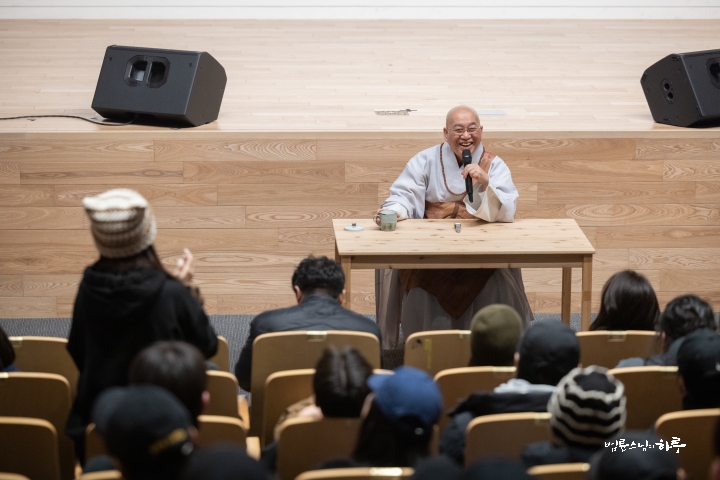 After the dialogue, Sunim emphasized that sutra study comes alive as wisdom not through mysticism or stubbornness, but through a balanced attitude of accepting what is understood and setting aside what isn’t understood for the time being.