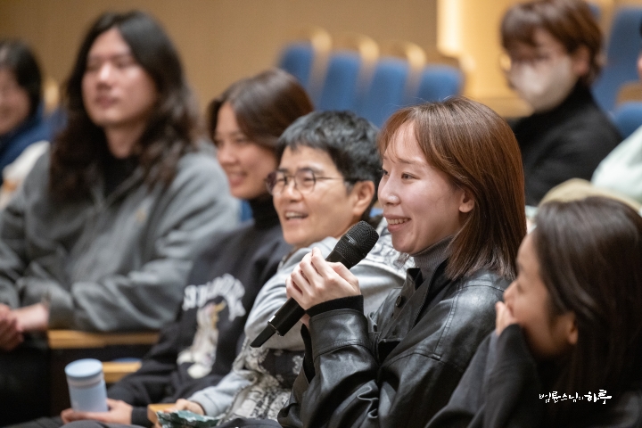 “We worked together as exercise, so would anyone like to share their thoughts? This isn’t a special Dharma talk session, just a time for conversation. It felt a bit sad to just part ways, so we gathered together. Also, even though Gilbeot representative, writer Noh Hee-kyung, couldn’t work due to poor health, she should at least show her face. Please start with your greeting.”