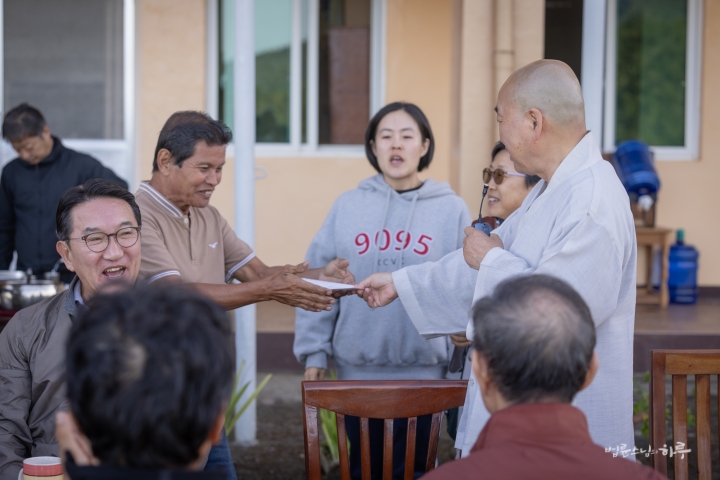 After the meal, Sunim gave Christmas gifts of pocket money to both the Filipino JTS local staff and Korean staff as year-end presents.