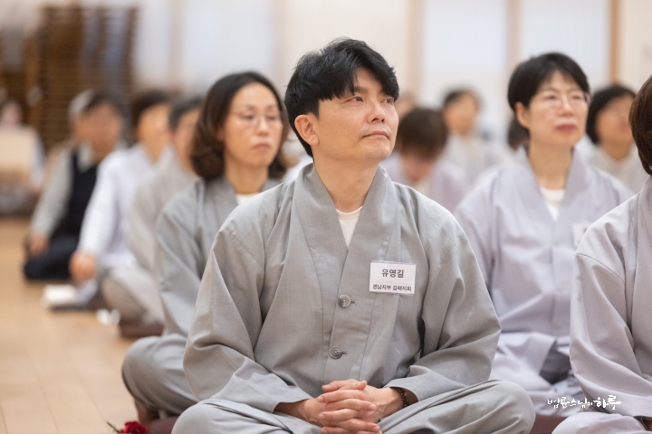 In this era of climate crisis, when conflicts and disputes are intensifying, I hope you will live frugally so you can share with others, live humbly so you can love and have compassion for people in the world, and maintain inner tranquility by not getting excited or carried away. In this way, if the Sangha wishes, you should be able to become a branch leader, division leader, team leader, or director. If the Sangha wishes, you should also be able to become a Dharma Teacher. You are becoming Seowon Practitioners who can take on such roles.