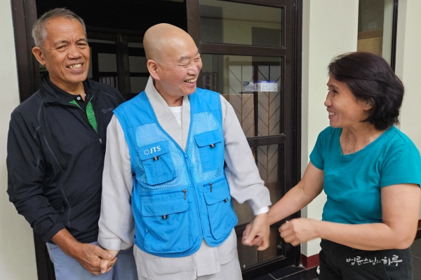 Sunim delivered funeral expenses collected together with former JTS Philippines representative Lee Won-ju and current representative Noh Jae-guk. After paying their respects, they arrived at the JTS Center at 4:20 PM.