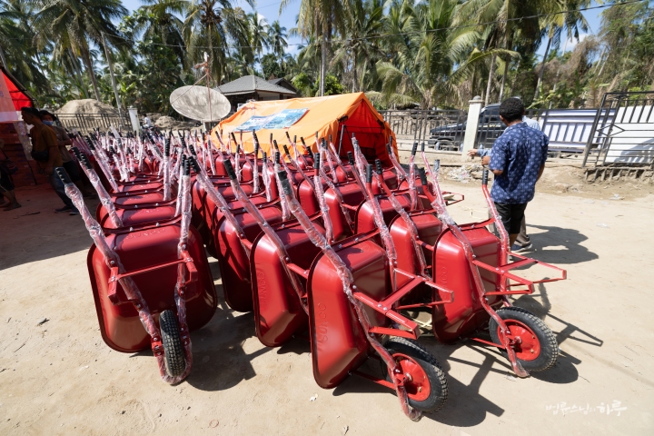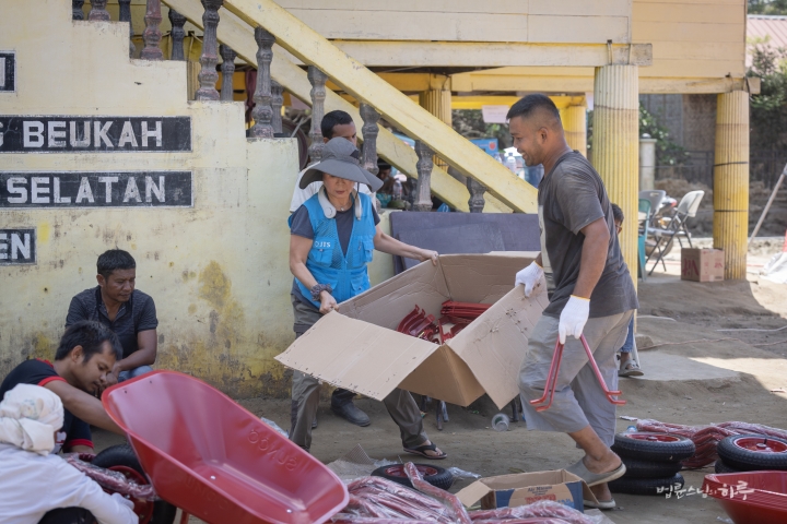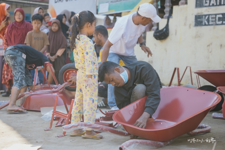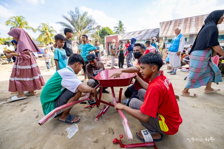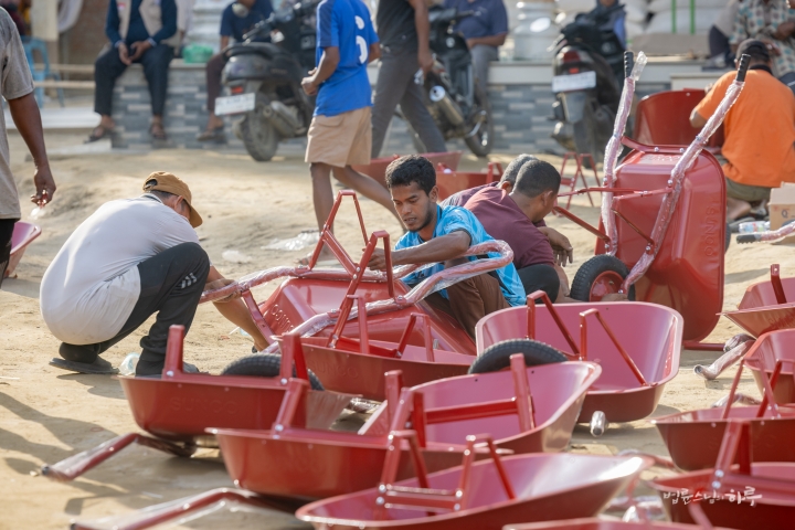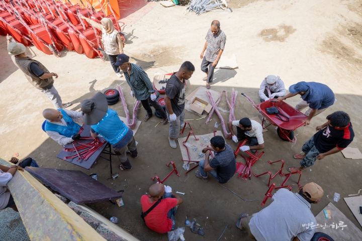 As the number of assembled wheelbarrows increased one by one, vitality filled the site. Although the residents had lost much due to the flood damage, they assembled wheelbarrows with bright smiles. Beyond simple relief distribution, the residents’ determination to continue their lives could be felt.