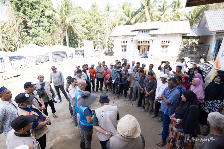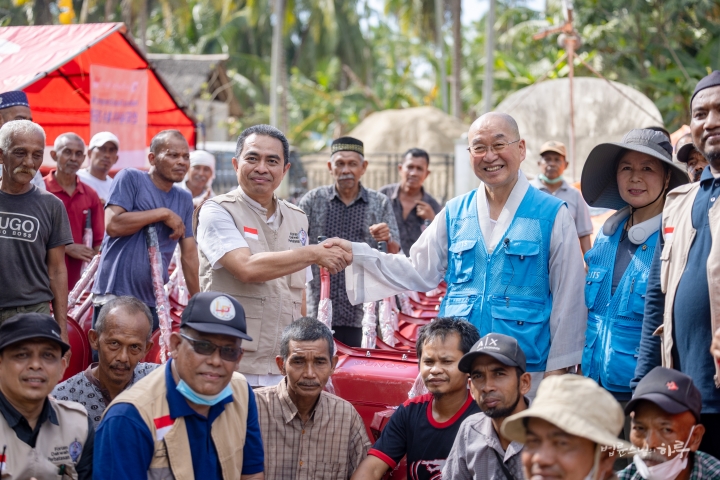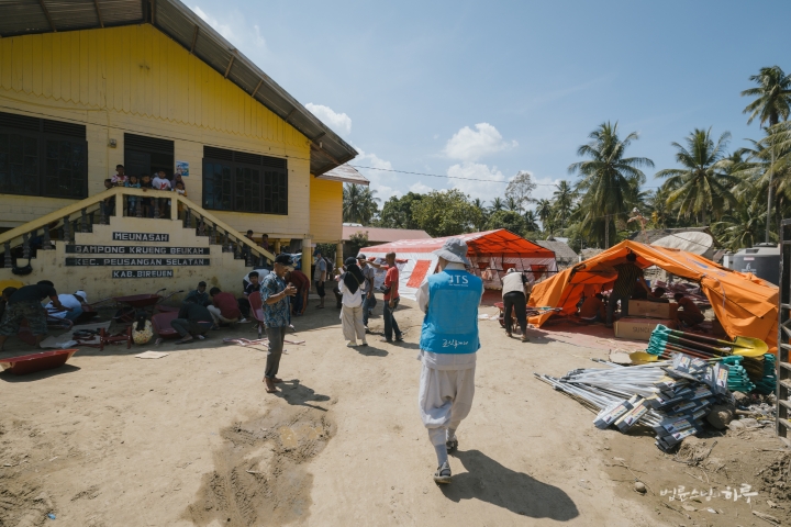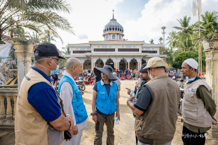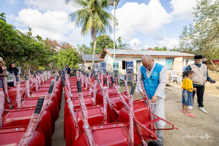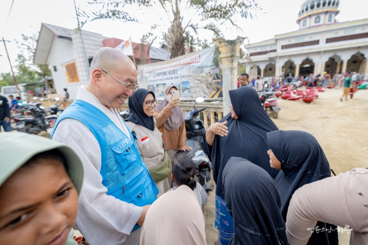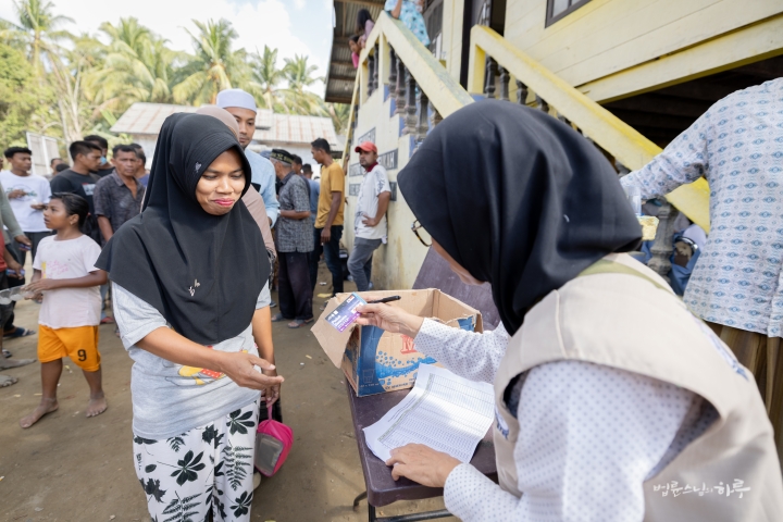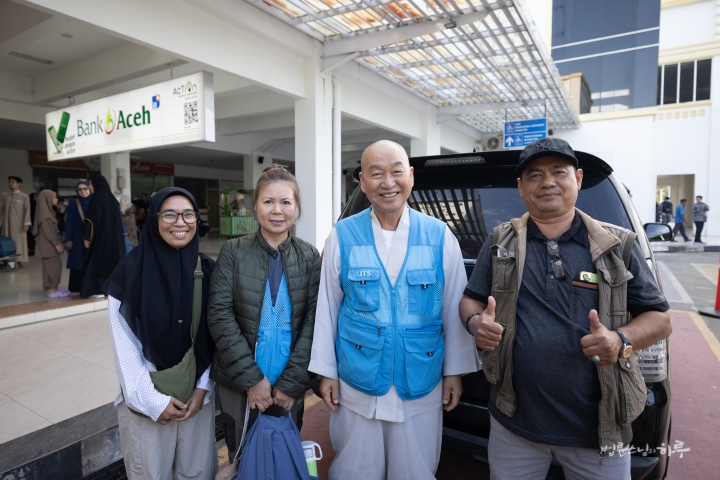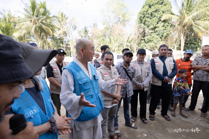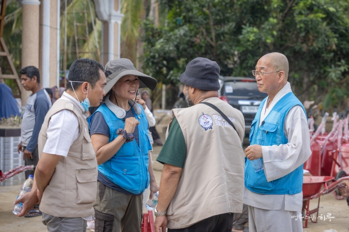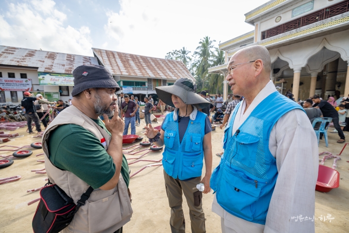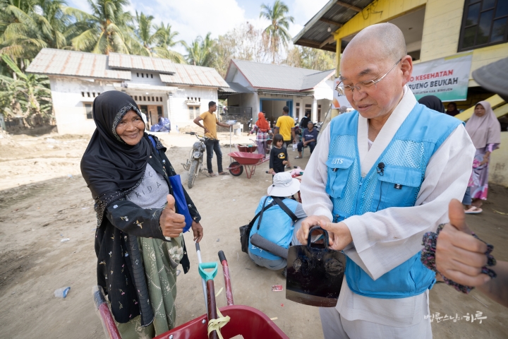 At 3:50 PM, after completing the relief supply distribution in Krueng Beukah village, Sunim moved on to the next village.
