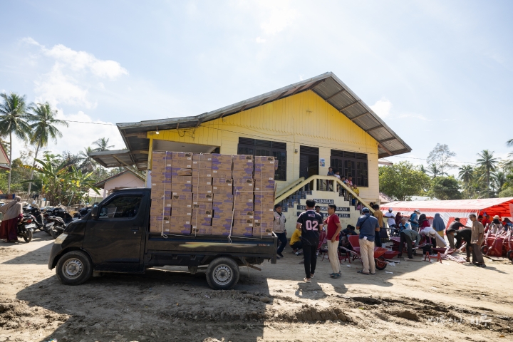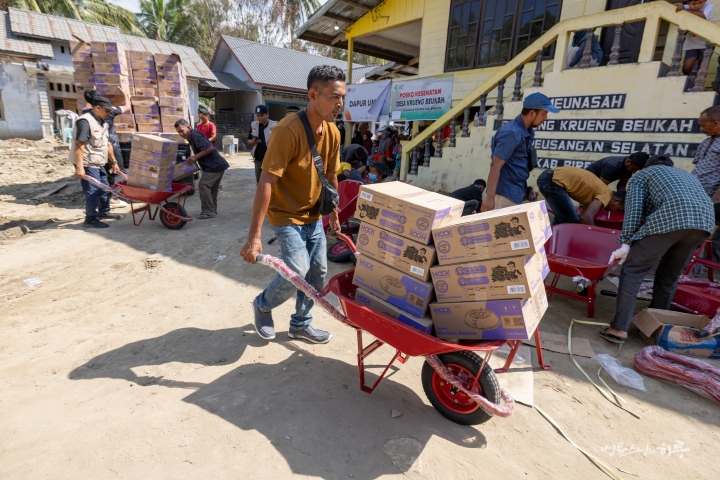 They immediately headed to the flood-affected Peusangan area in Aceh Province. Departing from Banda Aceh Airport at 8:50 AM, they drove non-stop for 4 hours.