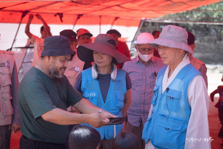 “The flood happened so suddenly; you must have been very frightened. I first learned of the situation after seeing the news in Korea. I was deeply saddened to hear that many people had lost their lives or were injured. After Jina Park, the representative of JTS, surveyed this area and provided some initial support, she reported the extensive damage to me. Following that report, I came here myself to look around and assess the situation.