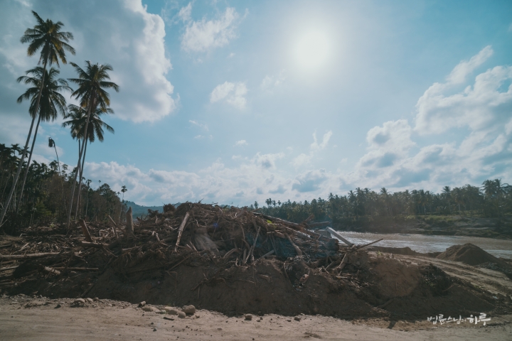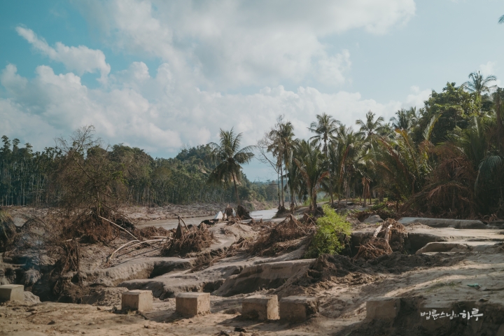 “Because of the sudden heavy rain, landslides occurred upstream, causing this river to overflow and engulf the village. Since the forest is covered with soil, it looks as if nothing happened, but everything is buried under more than a meter of soil.”