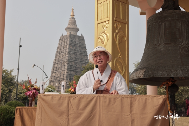 Sunim then gave a Dharma talk on the core teachings of Buddhism, explaining that the Buddha discovered the Middle Way in Dungeshwari and attained enlightenment of dependent origination here in Bodh Gaya.
